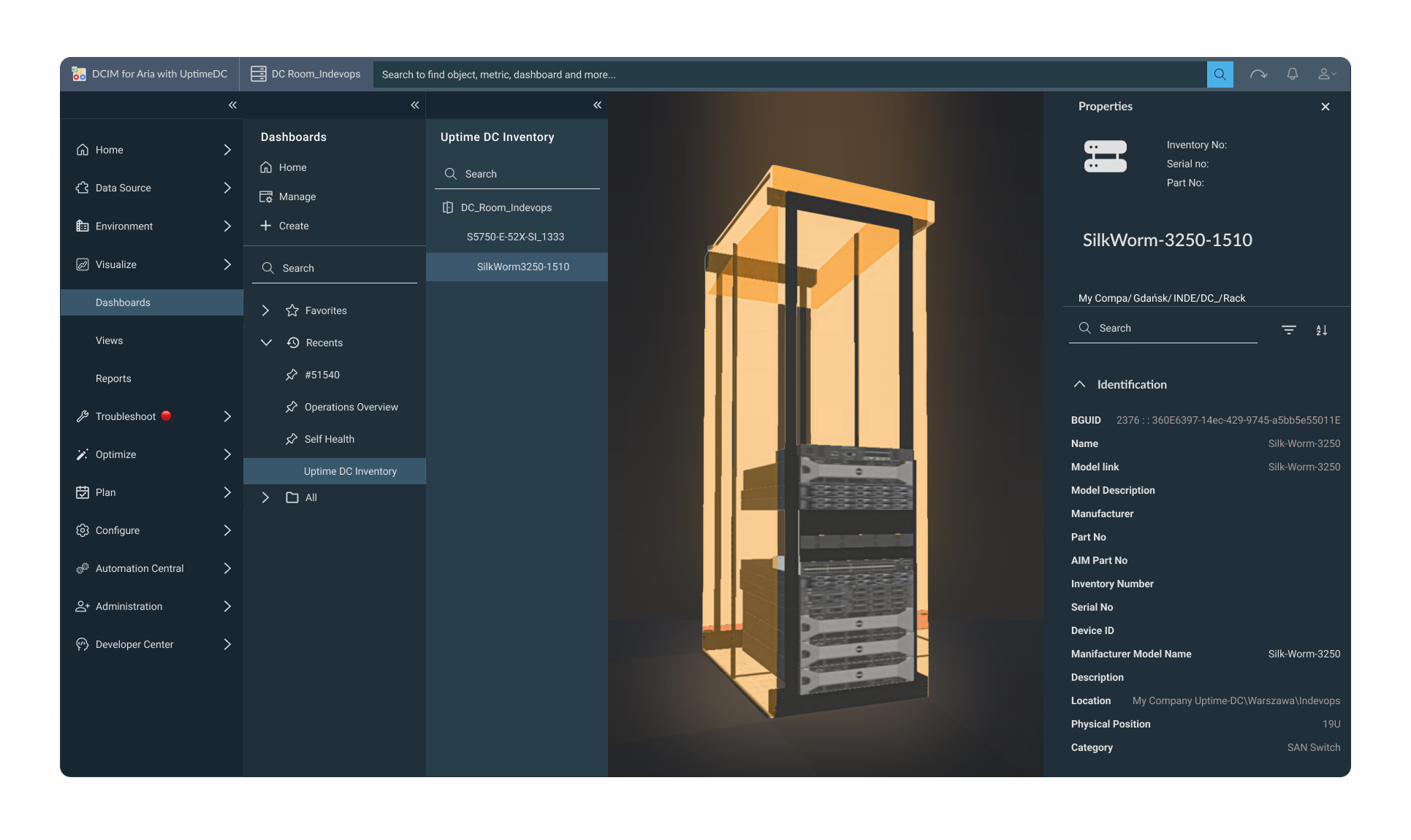 ✔ 2D/3D Visualization – rendering of Data Center infrastructure (hardware, network, power), facilitating planned device deployment.